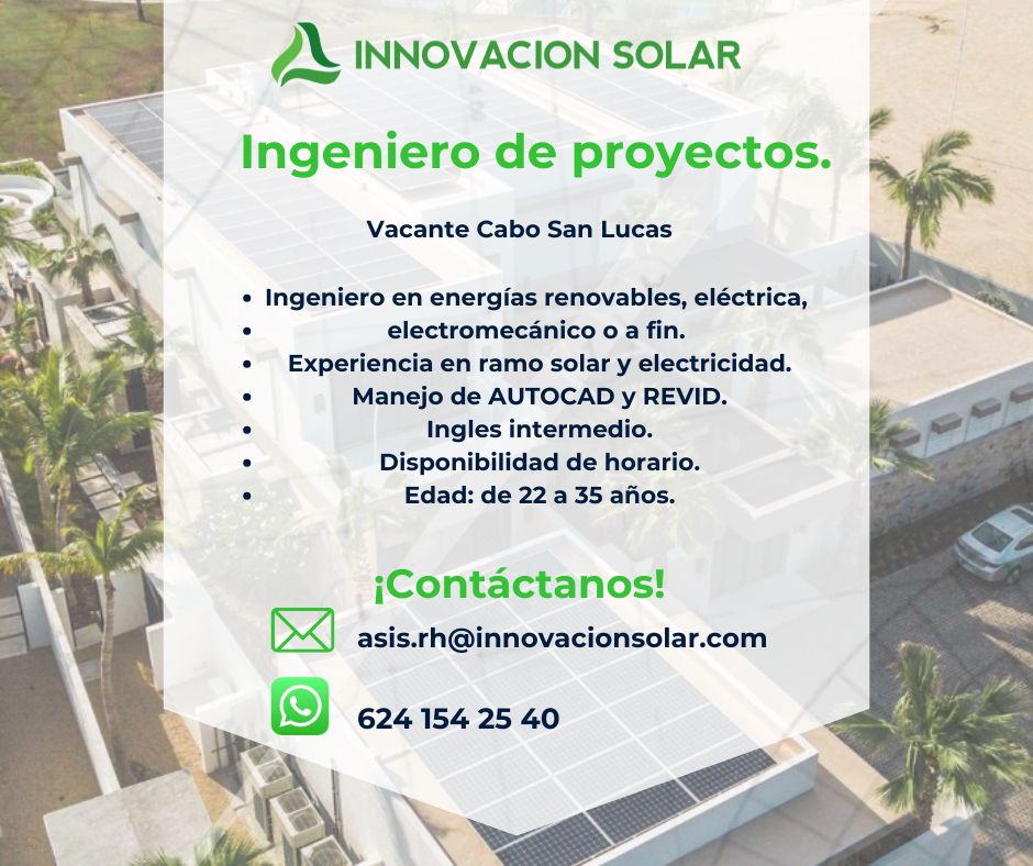 Para solicitar este trabajo envía un correo electrónico con tus detalles a asis.rh@innovacionsolar.com